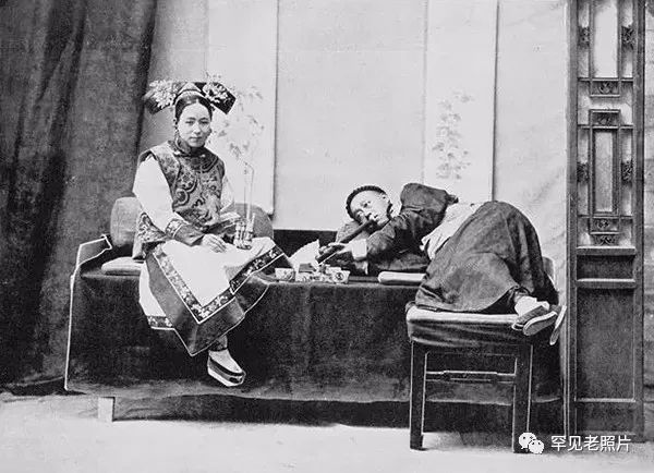1906年,北京,榻上抽大煙的滿人。山本讚七郎/攝。