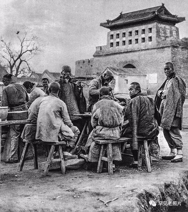北京,城門口理發攤。雷尼諾恩/攝,大約拍攝於20世紀初。