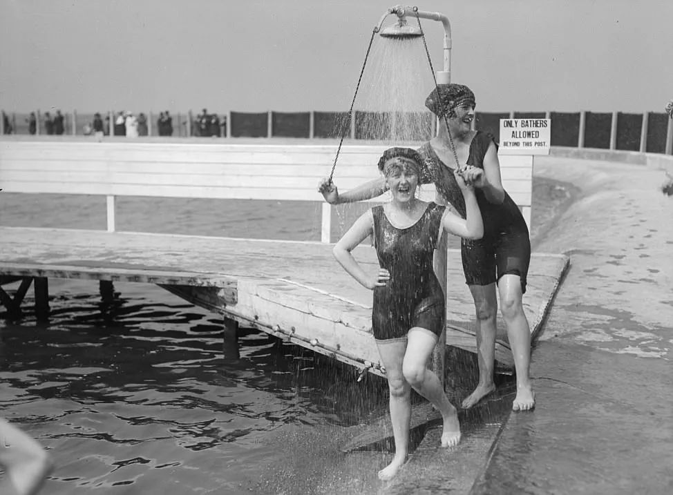 1918年,兩名婦女在英國蘭卡斯特洗淋浴。