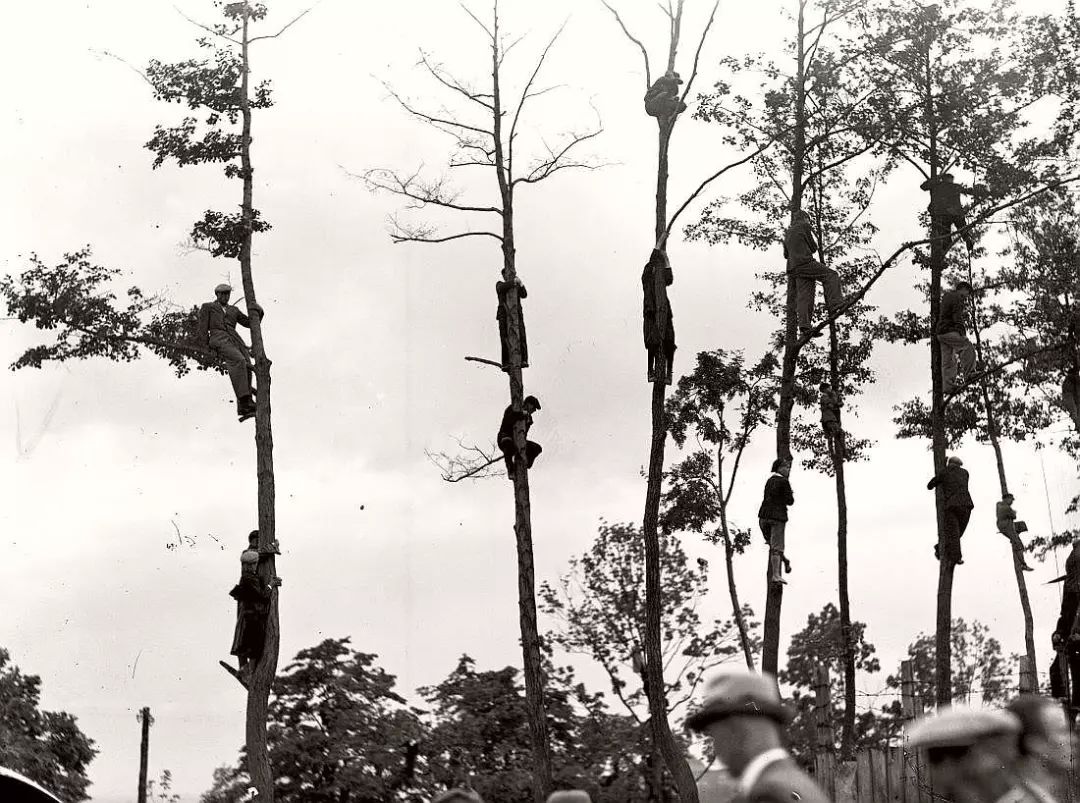 1936年,在波蘭的克拉科夫舉行的一場足球比賽中,部分切爾西足球隊的球迷們爬到高處觀看。