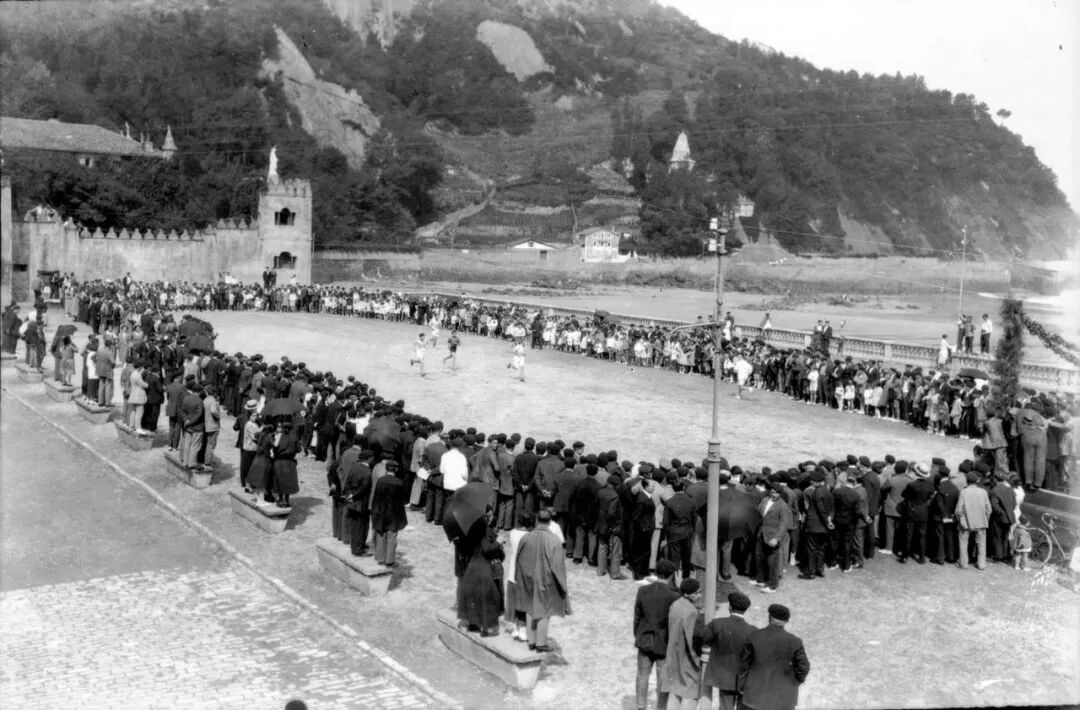 1916年,在西班牙紮魯亞斯,一大群人正在觀看體育比賽。