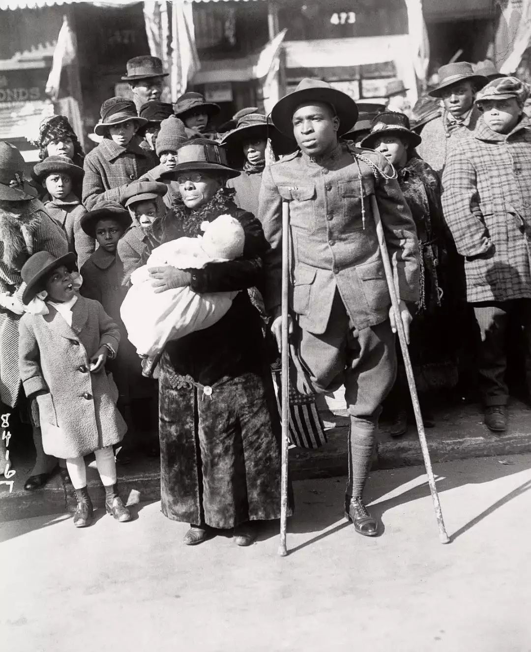 1918年,第一次世界大戰期間,一名歸國士兵與他的母親在美國紐約合影。