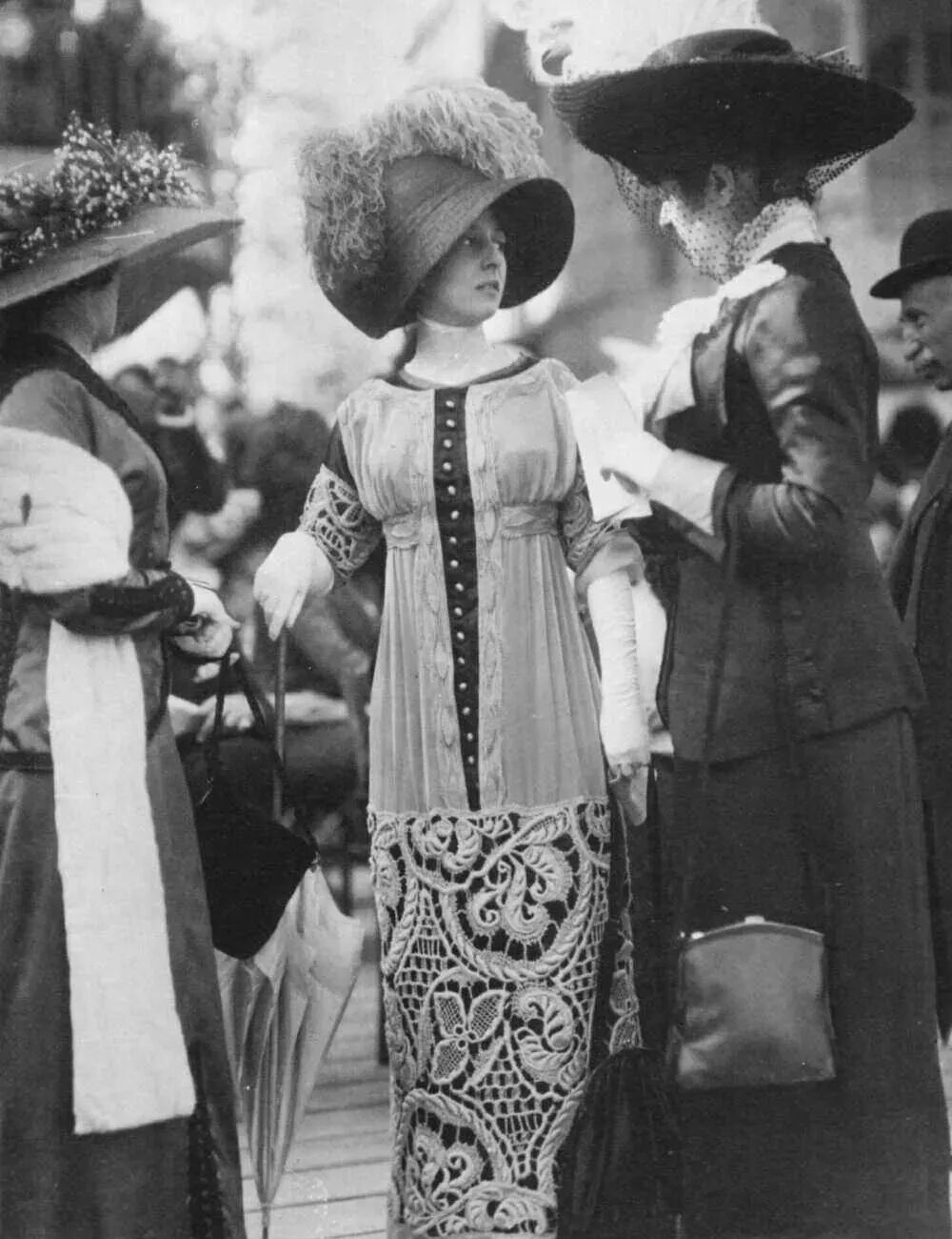 1911年,在英國倫敦街頭,一些穿著高級時裝的女性。