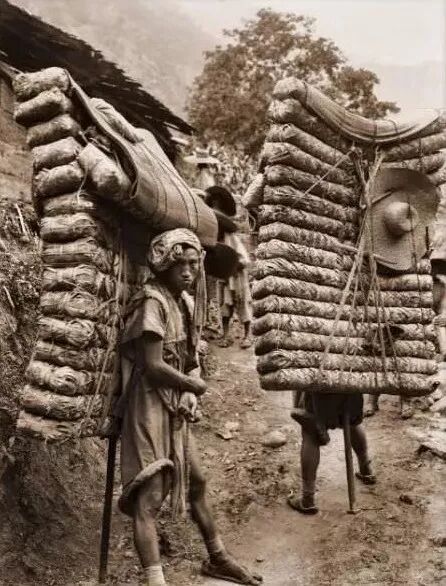 1903年,中國某地,這些受商人雇傭的工人,正在運送大量貨物。