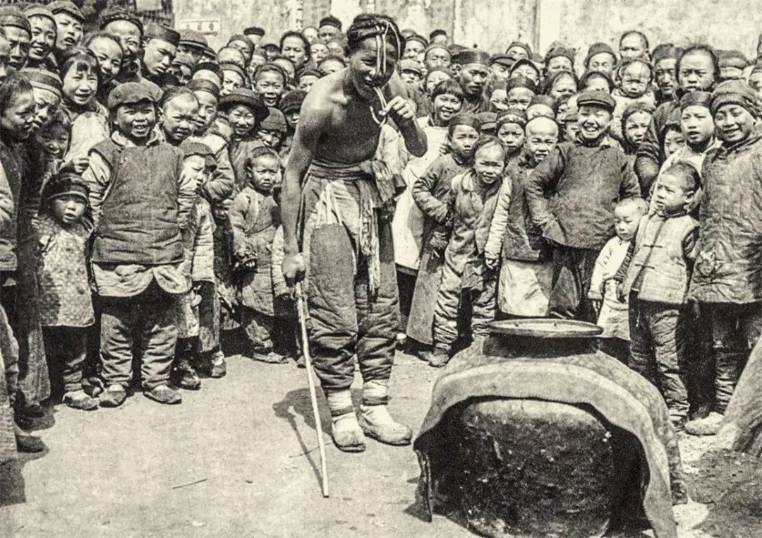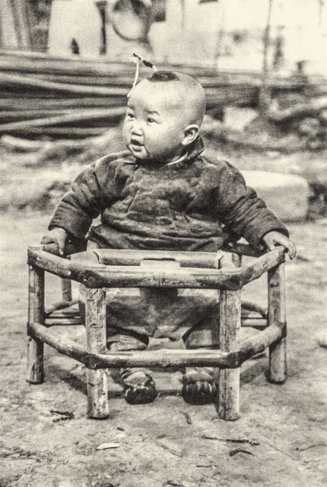 仍是老的理發方式,隻剃掉腦袋前麵的頭發。流動的理發匠帶著小火爐、木炭,用盆燒熱水。照片中,顧客拿著小籃子接住剪下的頭發。