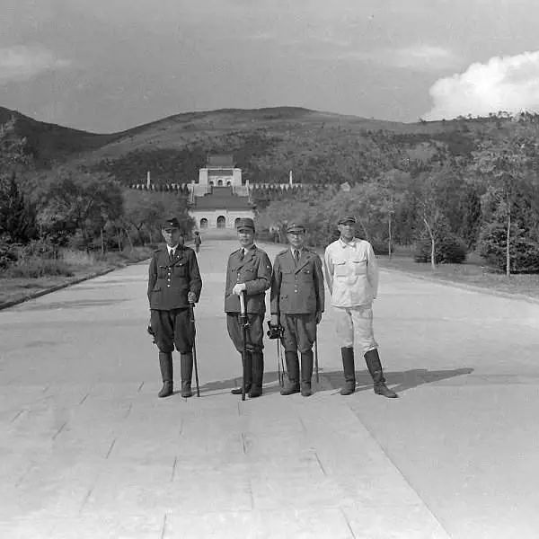 南京,中山陵內的日本軍官。誌波楊村/攝,照片大約拍攝於1940年左右。