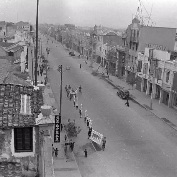 南京,遊行隊伍。誌波楊村/攝,照片大約拍攝於1940年左右。