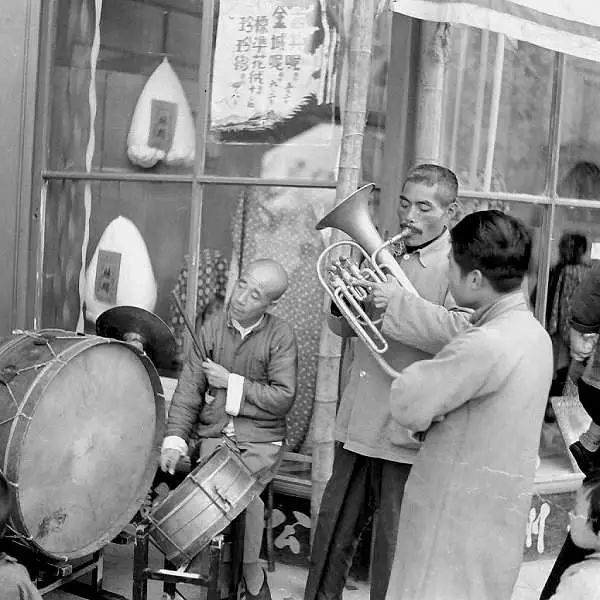 南京,街頭樂團。誌波楊村/攝,照片大約拍攝於1940年左右。
