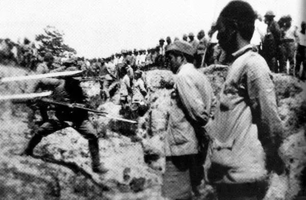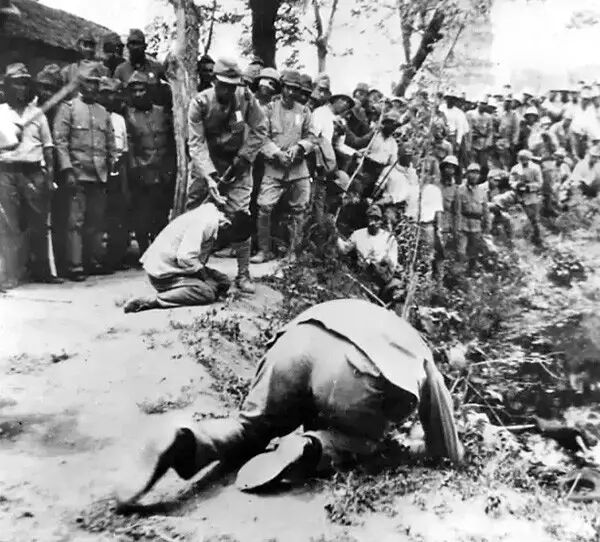1937年12月,南京,日軍命令戰俘自行挖壕溝,隨後以刺刀將他們活活地刺死。