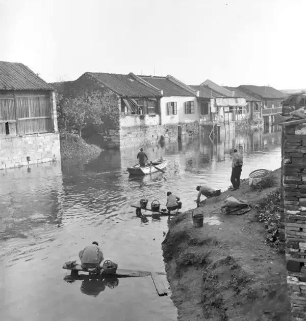 在秦淮河裏洗衣的婦女。大約拍攝於1940年代初的抗戰後。