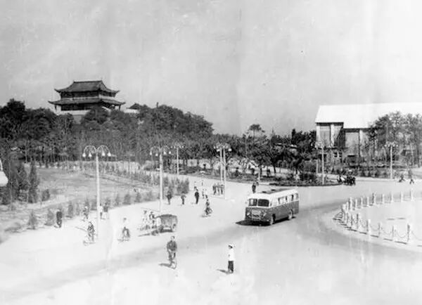 1958年,新建成的鼓樓廣場及西北角麵貌。