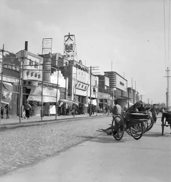圖中可見1935年建成的“大華大戲院”,就是今天的大華電影院。其隔壁便是“中央商場”。
