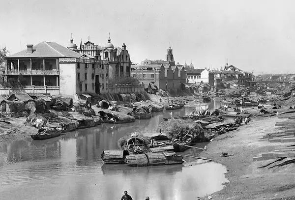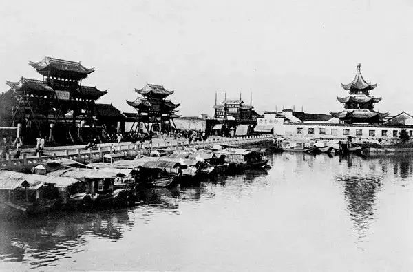 1910年,夫子廟與秦淮河裏的畫舫。杉江房造/攝。
