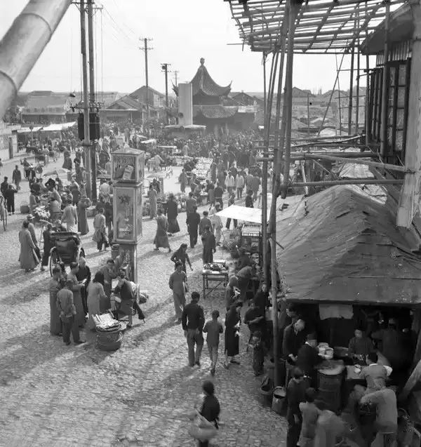 1940年代, 南京,夫子廟大成殿前的人群。海達·莫理循/攝 。