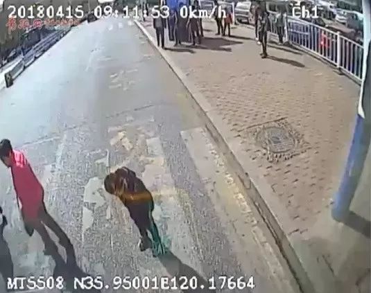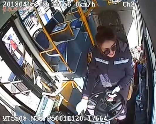公交女司機李小莉在斑馬線前停車禮讓。一個7歲的小男孩向她鞠躬致謝。