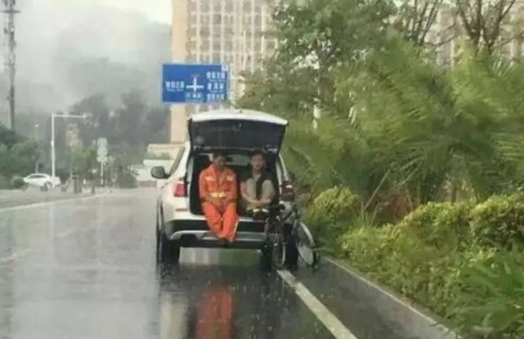 廣東珠海突降暴雨,一名環衛工人無處避雨。小夥開車路過,看到這一幕,主動邀請他上車避雨。環衛工人怕自己弄髒他的車,也擔心清掃工具被人拿走,婉拒上車。最後小夥打開後備箱,陪他一起避雨