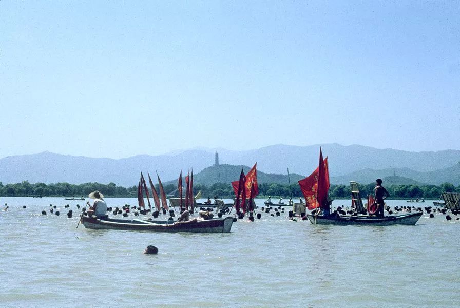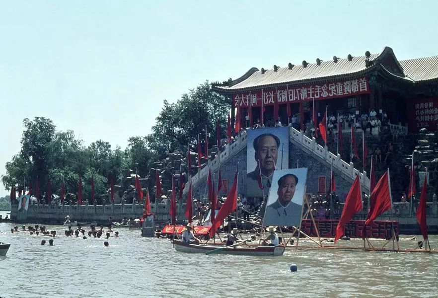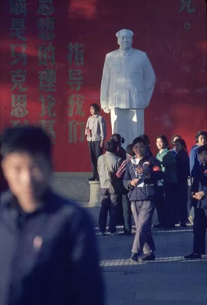 1966年,北海公園。一個個年輕人手捧紅寶書,在雕像前麵拍照留念。