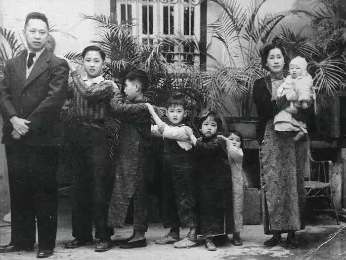 葉挺全家在澳門時的合影。左起:葉挺、長子葉正大、次子葉正明、四子葉華明、長女葉揚眉、次女葉劍眉、夫人李秀文、七子葉正克(被抱者)。