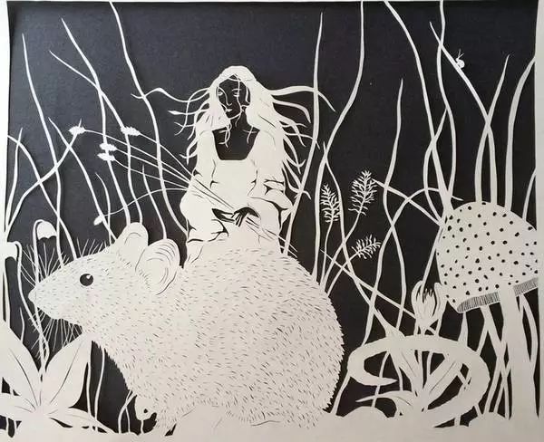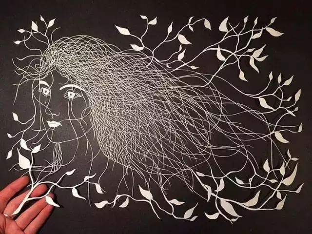 她的作品主題圍繞在自然、動物和人類這個永恒的話題,通過創意經常把動物擬人化或者賦予自然植物人類外形。她的每張作品的創作時間都在15個小時左右,這需要極好的耐心以及對手的超強把控,因為畫麵的細小和精致,有時一刀出現問題就容易毀壞已經完成部分細節的作品。