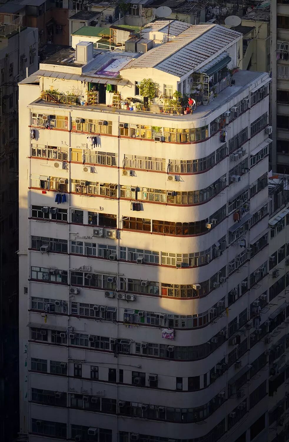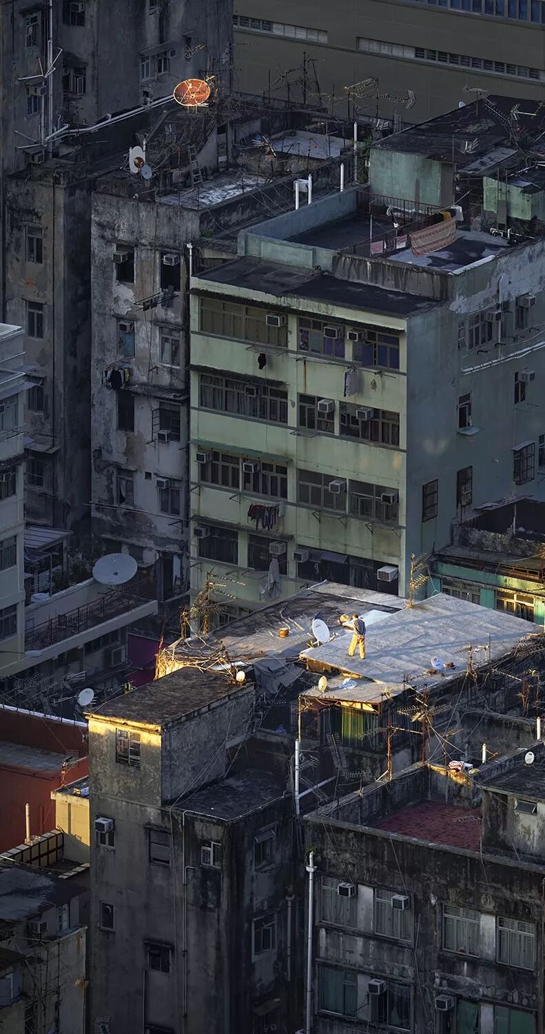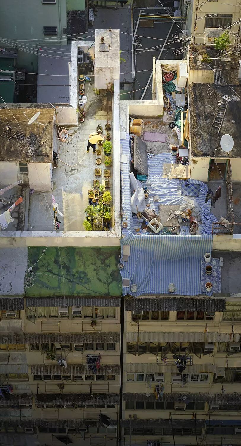 在城市化程度如此之高,以及人口密度極大的香港,這些照片也記錄了人們在如此“擁擠”的城市中,如何盡可能地利用所有可利用的空間。