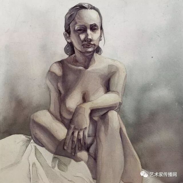 他選擇最難表現的水彩人體,更多注重色光的表現,在床上,在窗邊,在地板,在水中,幾乎不所不在。