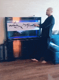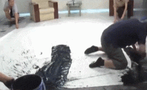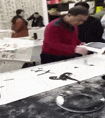 這一點在下麵這位書法大師身上體現得尤為盡致。不光是他家那不要錢的紙墨,奮不顧身的動作更是達到了人筆合一的超脫。