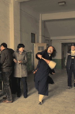 下麵這位教授就把少林身法與武當鐵拳融入到了書法裏麵。