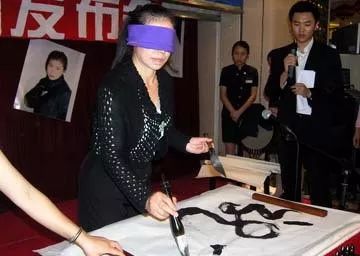 除了上麵這些靠頭鐵吃飯的,雜耍特技也跨界融入到了社會書法老師的筆鋒之中。