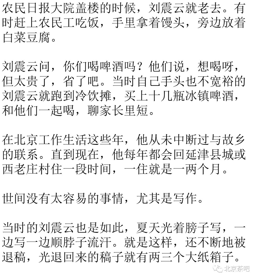 他要去《農民日報》,老家的爸媽堅決不同意,當時已經是縣公安局局長的父親說,你放著中南海不去,說不定將來能當個官呢。但劉震雲堅持去《農民日報》。