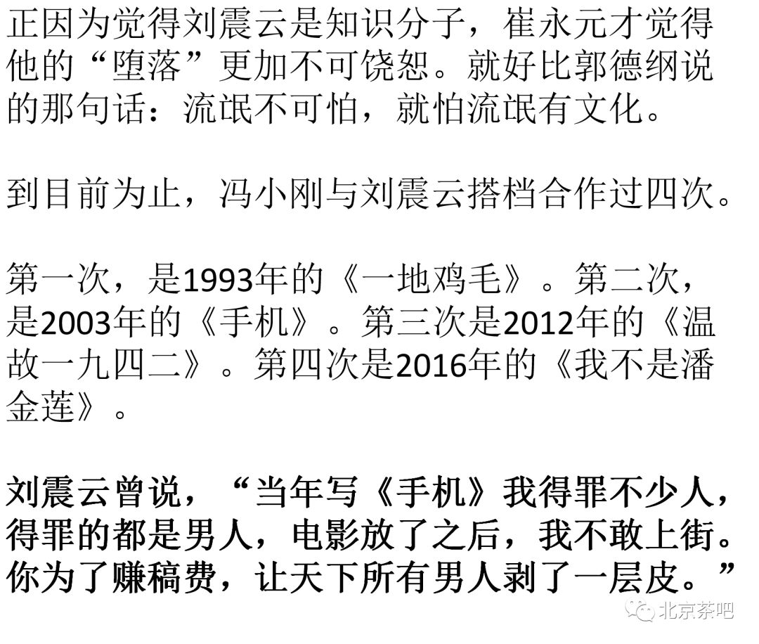 影視圈來錢之快,給當年蝸居於《農民日報》的劉震雲帶來極大衝擊。後來他對於這種生活更是甘之若飴,不僅和馮小剛合作多部電影,還很樂於在其中客串。
