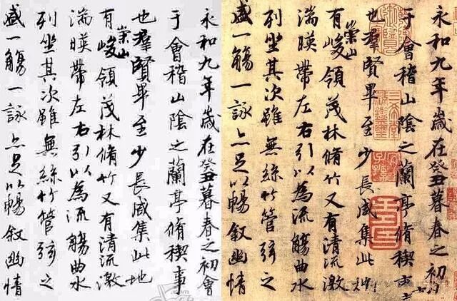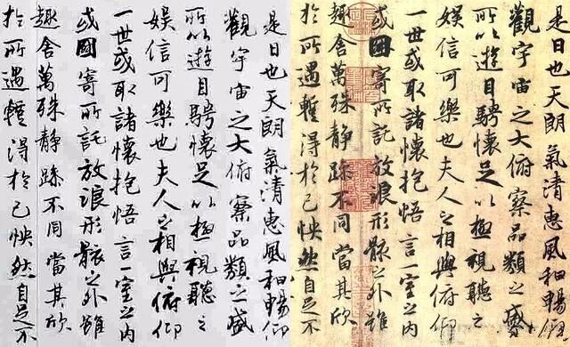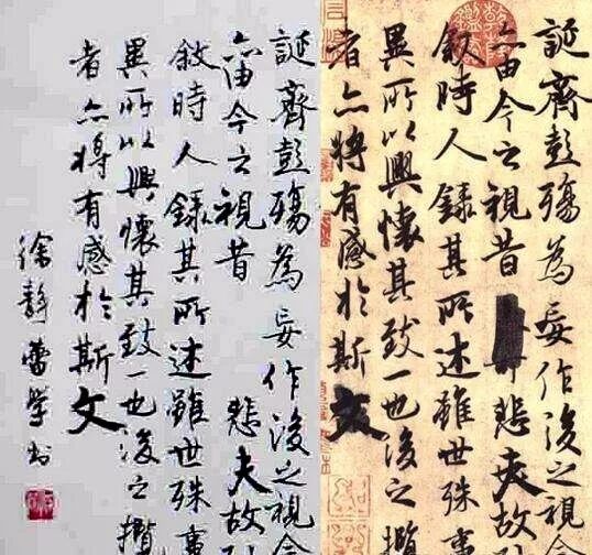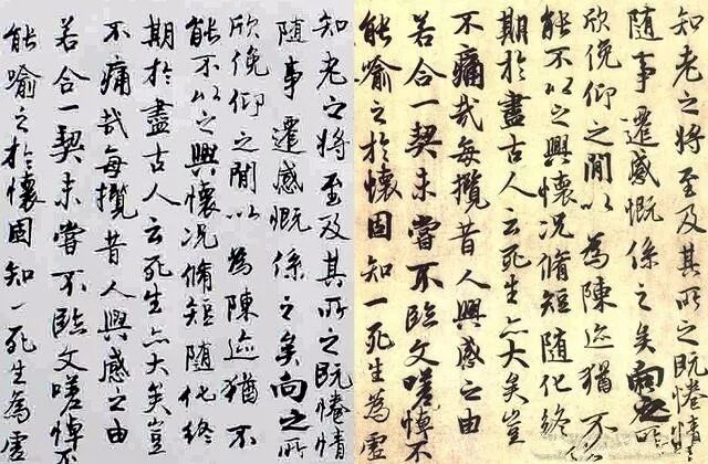 徐靜蕾臨摹的《蘭亭序》與原作對比