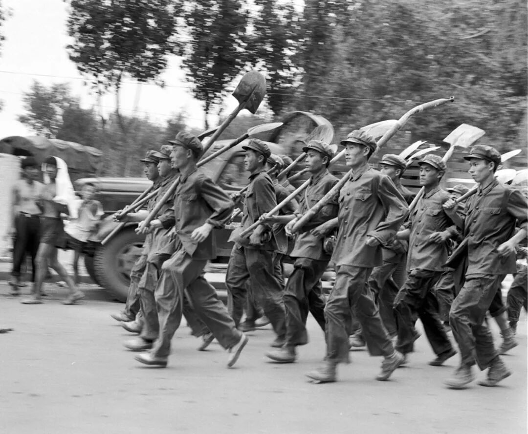 震後,大批人民解放軍日夜兼程奔赴災區,搶救人民生命財產。(1976年8月1日發)新華社記者 武清月 攝