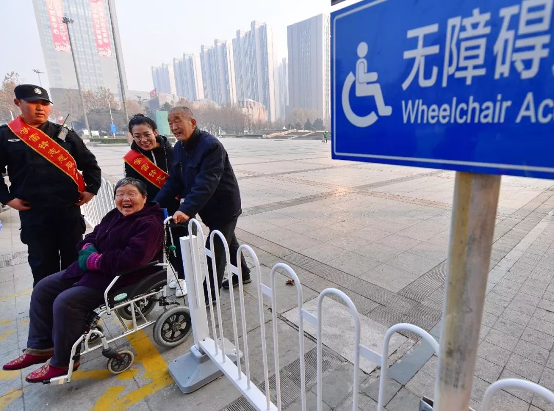 2017年12月2日,河北唐山市誌願服務組織孵化基地(社會公益誌願服務之家)正式成立。這是當天兩名學雷鋒誌願服務者準備幫助老人從無障礙通道通過。新華社記者 楊世堯 攝