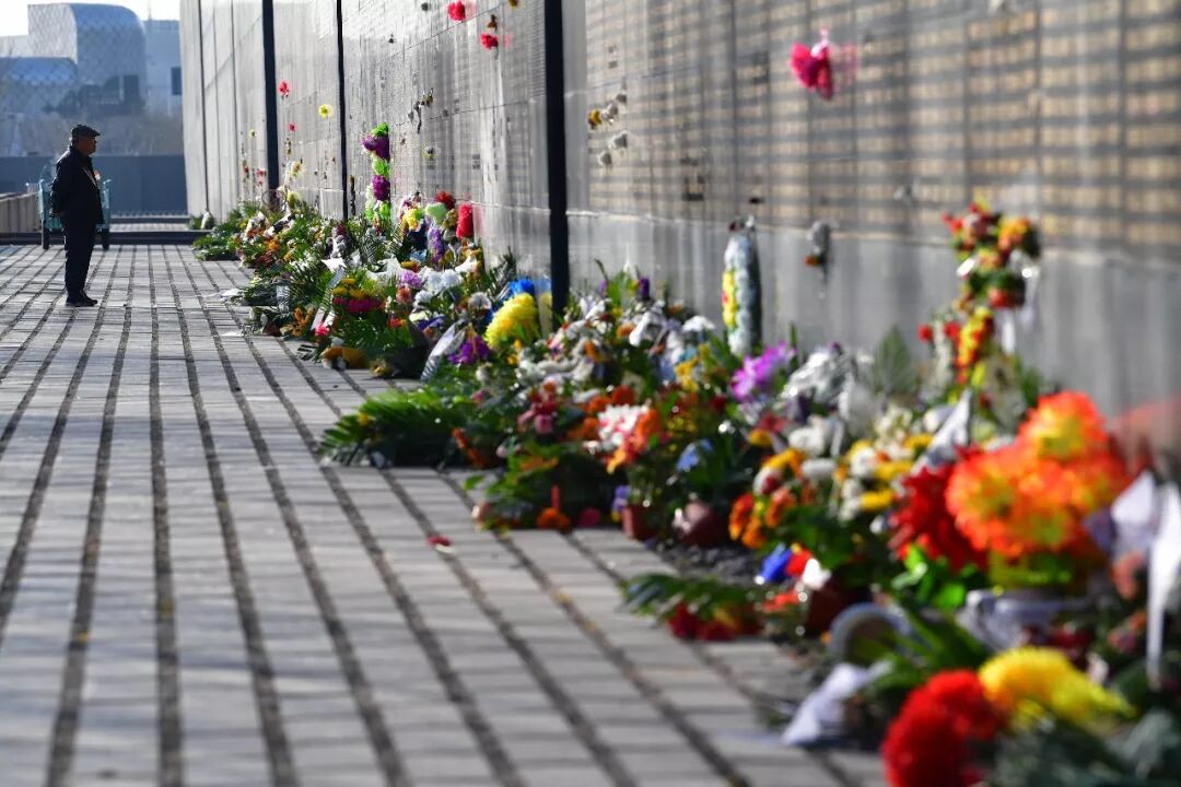 2018年4月4日,一名市民在唐山地震紀念牆前悼念逝者。新華社發(董鈞 攝)