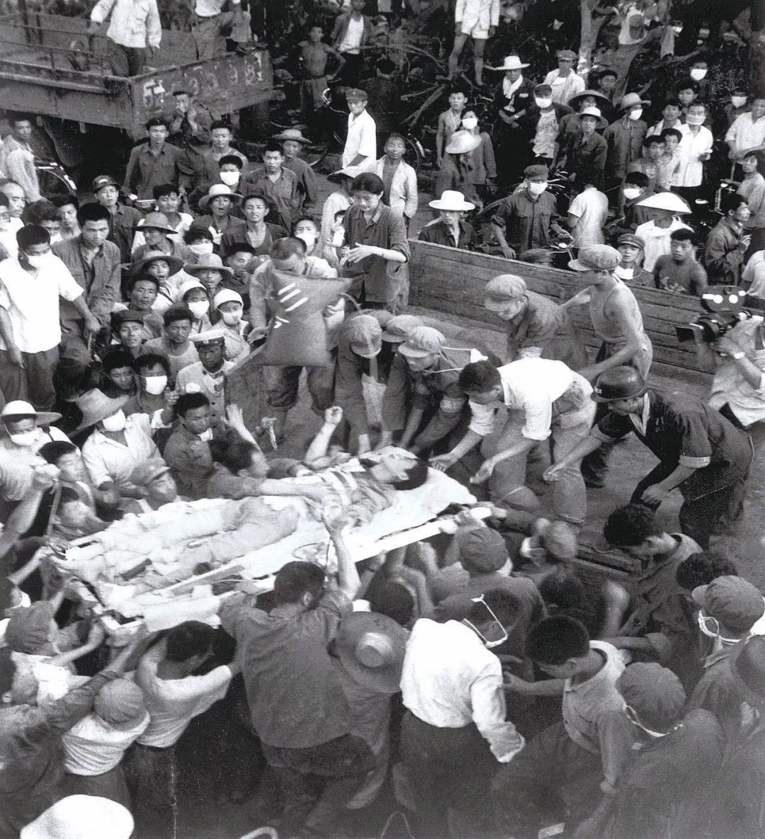 震後6天內,2萬名醫護人員從全國各地奔赴唐山。在臨時搭建的帳篷中,借助手電筒的光亮進行手術。在簡陋的條件下,保住了眾多垂危者的性命。