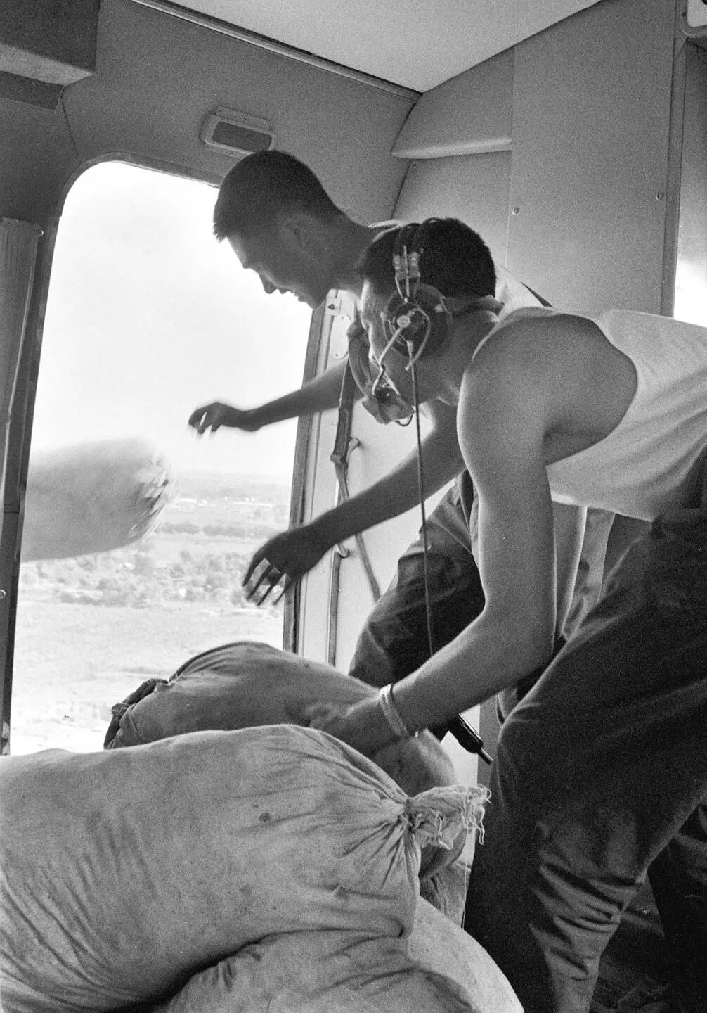 人民解放軍把祖國各地人民支援災區的抗震救災物資,空投給災區人民群眾。(1976年8月1日發)新華社記者 韓曉華 攝