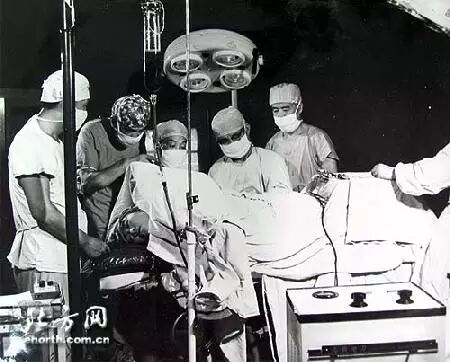 (醫療隊員在簡陋的手術台前搶救傷員)