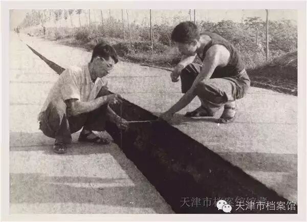 (京津公路武清縣境內地震後公路縱向開裂寬達60厘米長1公裏照片)