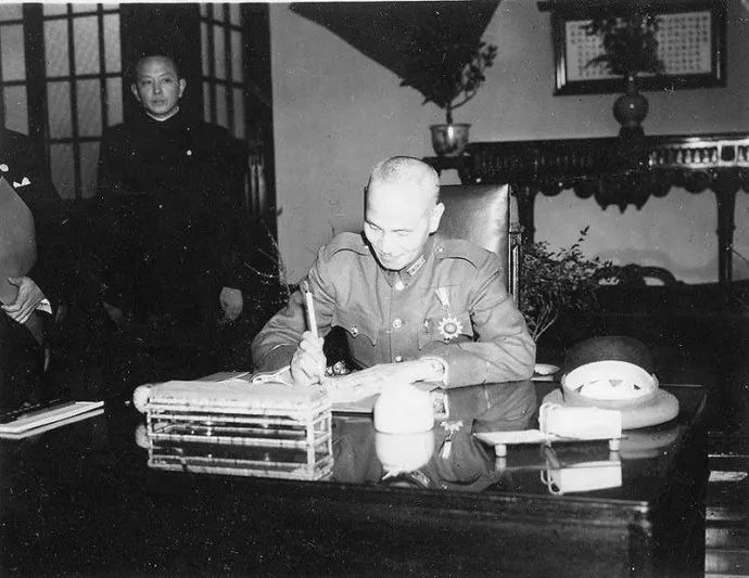 1946年12月31日,蔣介石於南京簽署憲法頒布令,宣布進入憲政時期。