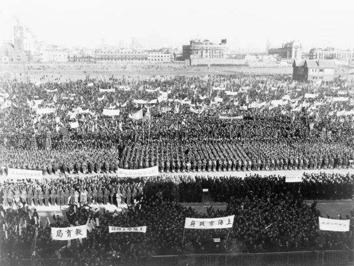 1946年2月,上海,可能是歡迎蔣介石的集會。
