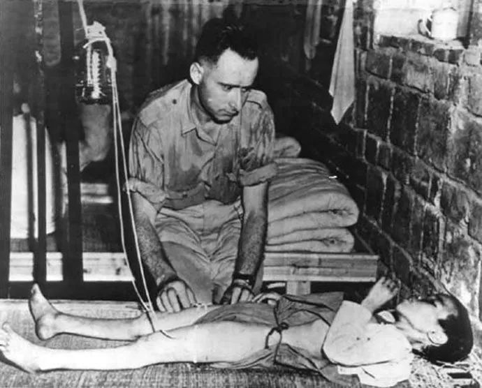 1946年8月13日,湖南,大饑荒中聯合國善後救濟總署醫生救治的病人。