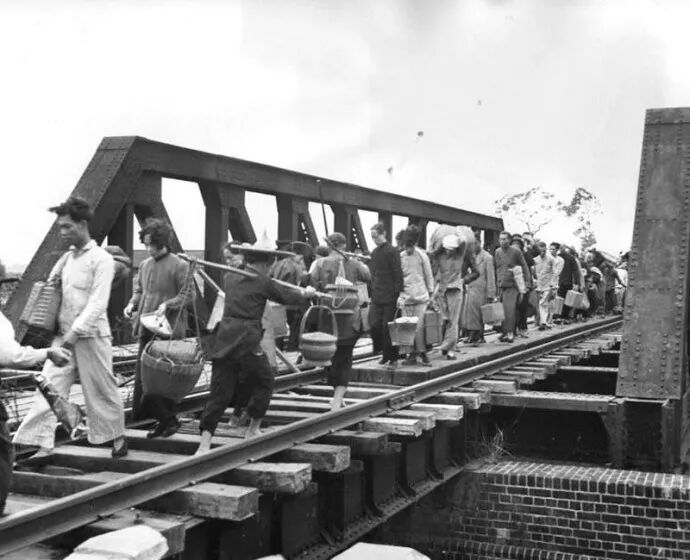 1949年11月2日,內地與香港邊界,難民過橋進入香港。