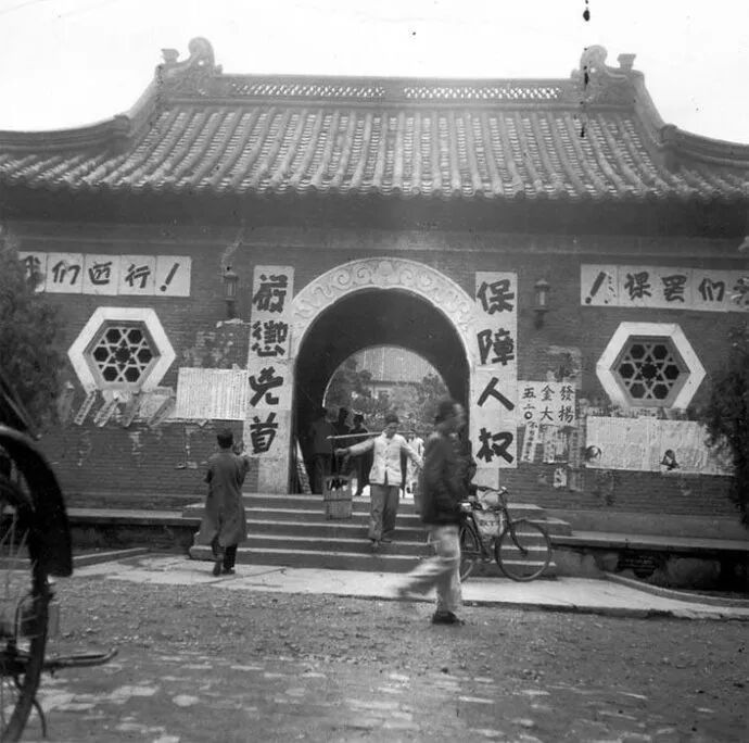 1947年初,南京,抗議美軍暴行時期的金陵大學主大門。