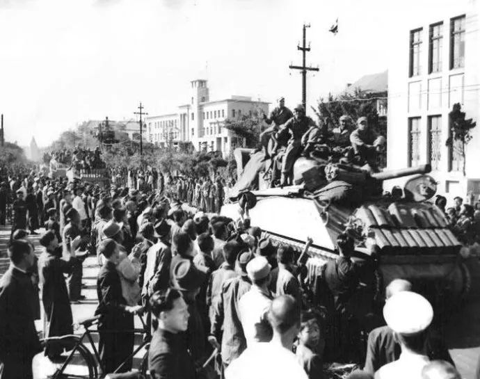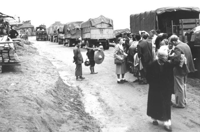 1947年,大規模撤離北平回國的美國海軍陸戰隊。