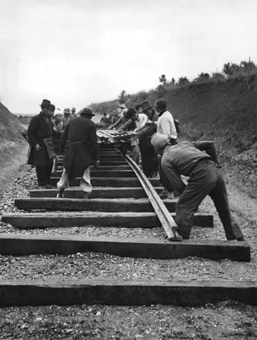 1948年2月,江西,修築浙江——江西鐵路的勞工。