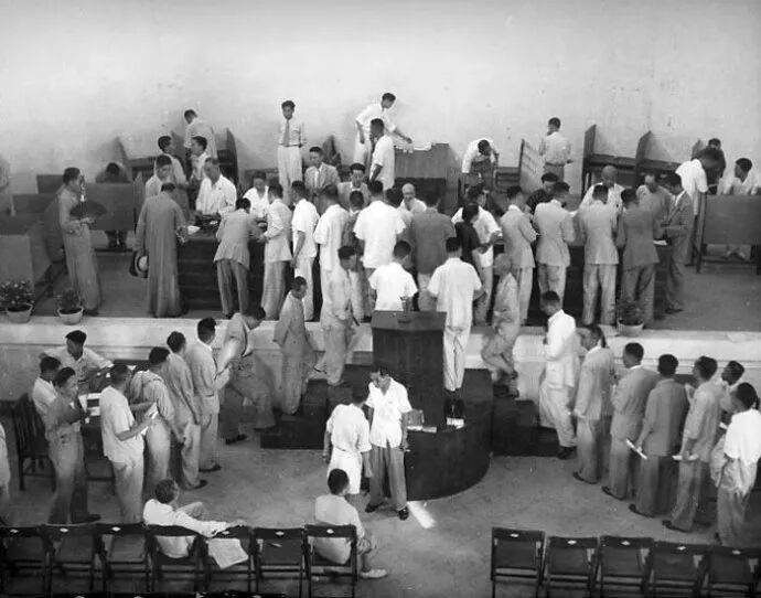 1949年6月,廣州,閻錫山就任行政院長兼國防部長。圖為當時立法院選舉投票的場景。