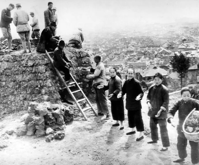 1949年4月,鎮江,協助修建防禦工事的平民。
