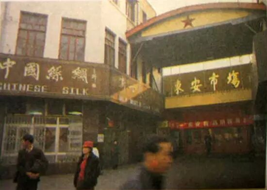 銀行往南經過一個服裝店和一個絲綢店,凹進去是東風市場西門,西門南側小道裏有公共廁所,偌大一個東風市場似乎僅西門外一個公廁。西門北側三層樓是新世界絲綢店,南側三層樓是華大綢布店,兩家布店均為山東人產業。山東人在北京經營綢緞布匹生意要追朔到清朝同治年,“八大祥”是那時的傳奇。截止上世紀三十年代八大祥陸續倒閉,僅餘前門外大街的謙祥益和大柵欄的瑞蚨祥,但是山東人開設的鋪麵卻如雨後春筍,在京城綢緞布匹生意市場占了一席之地。