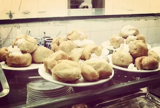 改造後的東風市場北門內,東來順旁邊出現一家賣奶油炸糕的小店,奶油炸糕現炸現賣,蘸著白糖極其好吃,再配上一碗香噴噴的蓮子小豆粥,勾人上癮花錢。老東安市場曾經有家專賣奶製品小吃的“豐盛公”奶酪鋪,不知北門的奶油炸糕是否得豐盛公“真傳”。