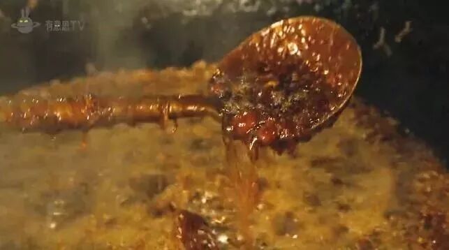 這句話的意思是,醬要精細不能做成大鍋飯,炸的過程中不加一滴水。炸好後,用筷子從醬中間劃開一道中間合不上的縫,豬油順勢填進縫隙,這才叫好醬。